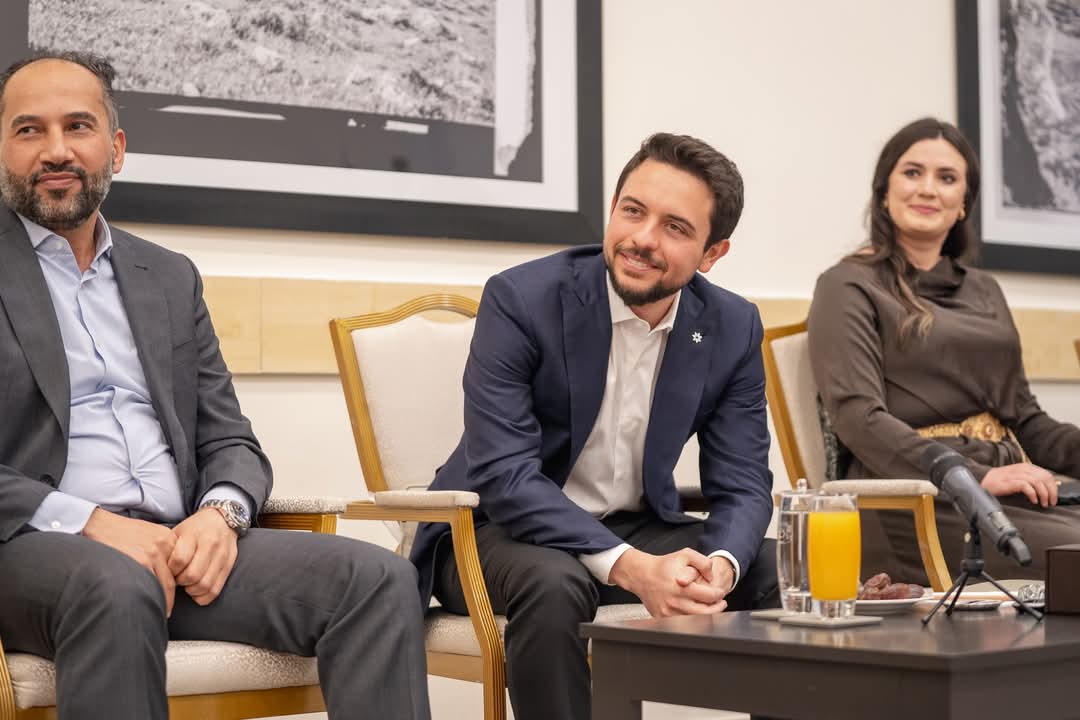 سمو الأمير الحسين بن عبدالله الثاني، ولي العهد، يحاور مجموعة من الشباب في لواء وادي السير
