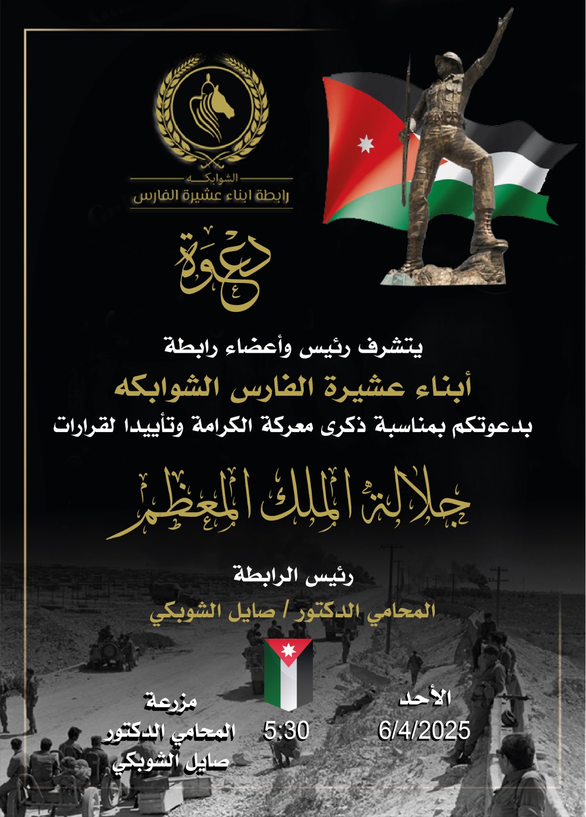 دعوة من رابطة ابناء عشيرة الفارس الشوابكة