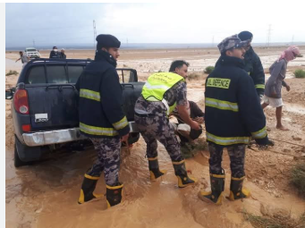 إنقاذ 5 أشخاص من عائلة واحدة حاصرتهم السيول في الطفيلة