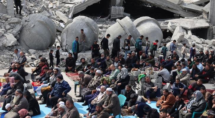 غزيون يؤدون صلاة العيد فوق ركام المساجد