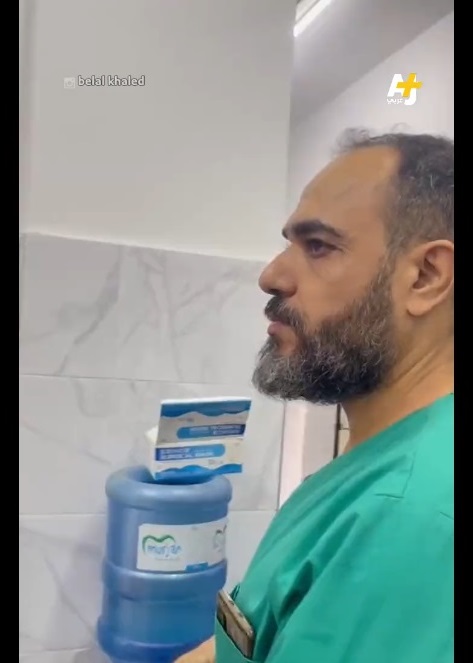 شاهد كيف صُدم طبيب في غزة بجثتي نجله ووالده أحضرت للمستشفى اثناء عمله – فيديو