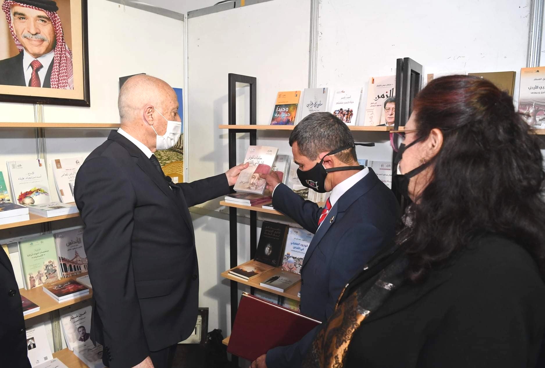 الرئيس التونسي يزور الجناح الأردني بمعرض تونس الدولي للكتاب