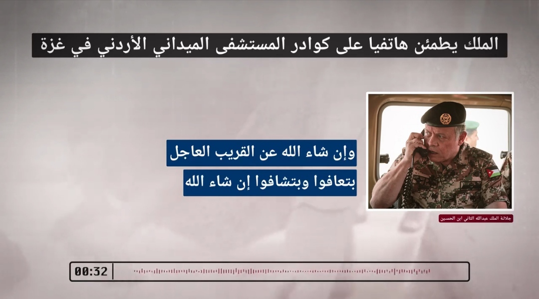 جلالة الملك عبد الله بن الحسين يطمئن بمكالمة هاتفيه مع كادر المستشفى الطبي الاردني لدعم المصابين في قطاع غزة