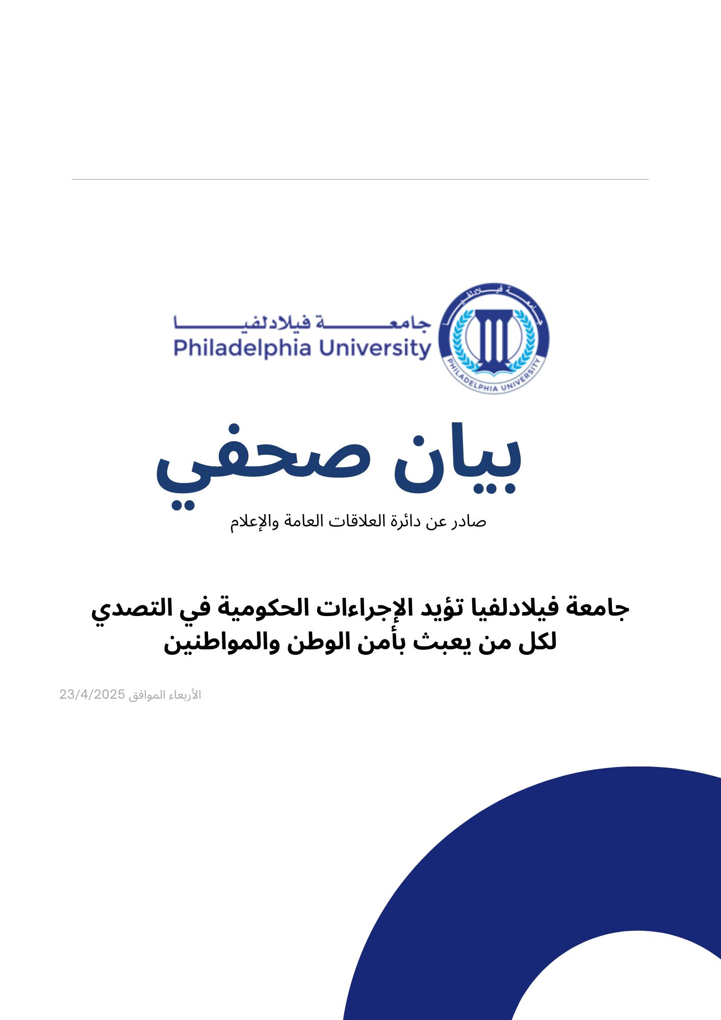*جامعة فيلادلفيا تؤيد الإجراءات الحكومية في التصدي لكل من يعبث بأمن الوطن والمواطنين*