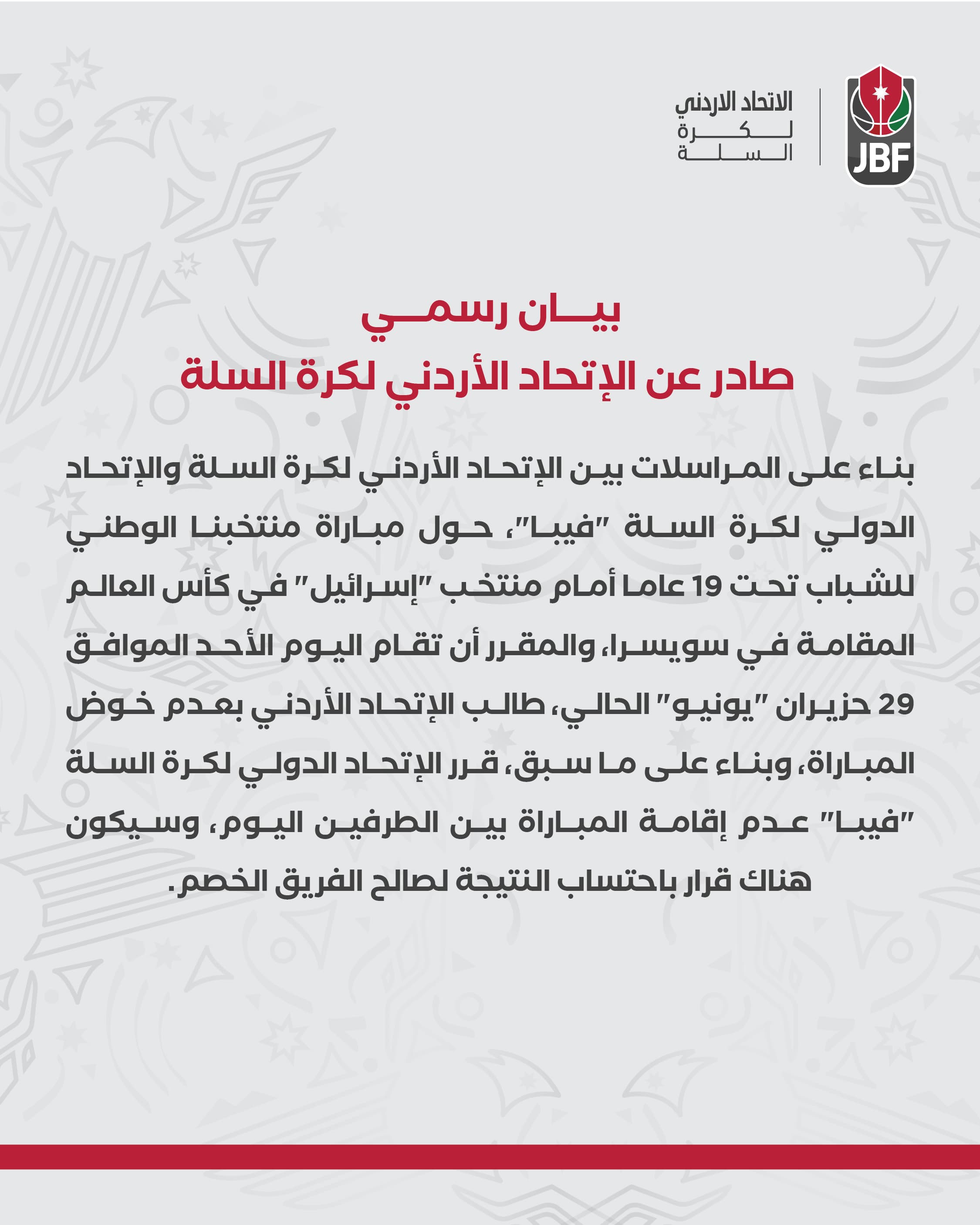 منتخب الشباب الأردني يرفض التطبيع ويرفض اللعب مع المنتخب الأسرائيلي