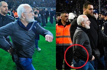 بالفيديو...رئيس فريق يوناني يحتج على حكم المباراة بالمسدس!
