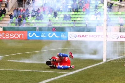 بالفيديو ...ضربته الألعاب النارية.. إصابة حارس مرمى في مباراة قمة بكأس تشيلي