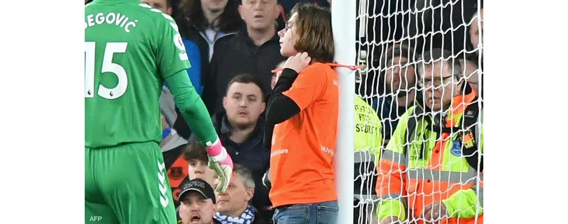 صور لواقعة غريبة بالدوري الإنجليزي.. ربط عنقه بالمرمى