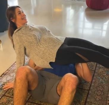 نجل راغب علامة يرفع والدته بدلا من الأثقال