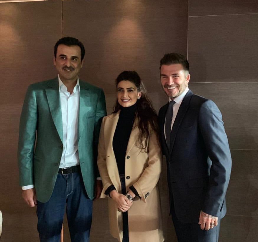 علا الفارس برفقة أمير قطر وبيكهام في حديقة الأمراء