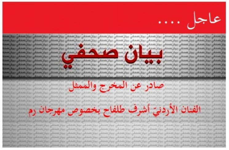 بيان صحفي صادر عن المخرج والممثل الفنان الأردنيّ أشرف طلفاح بخصوص مهرجان رم المسرحيّ