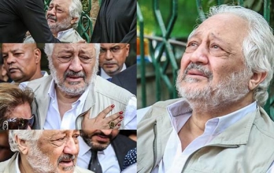 انهيار الفنان خالد زكي لحظة تشييع جثمان زوجته - صور