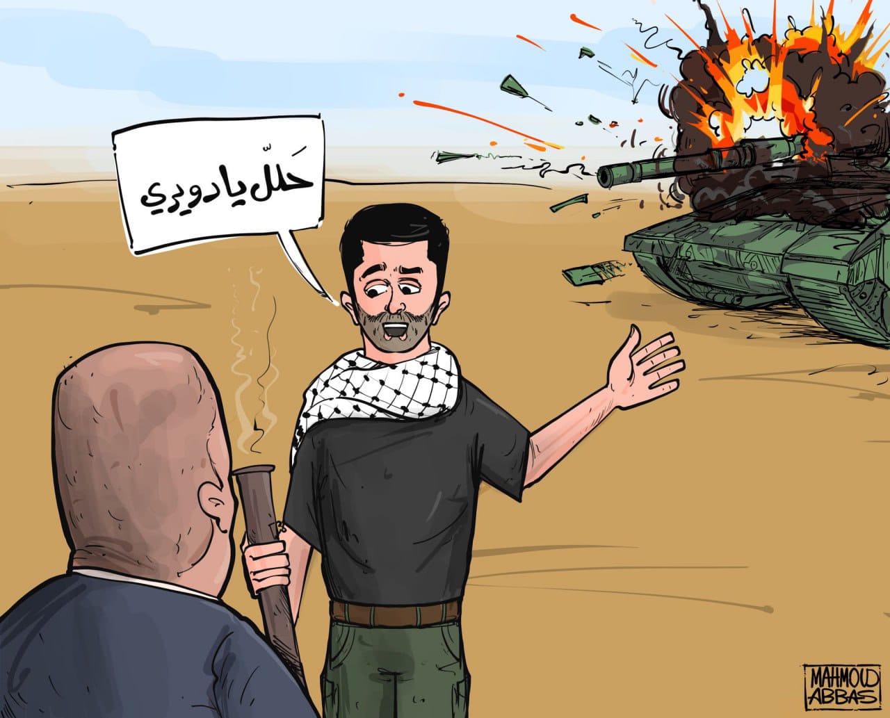 رسام الكاريكاتير نبيل حسنات في رسمه معبره