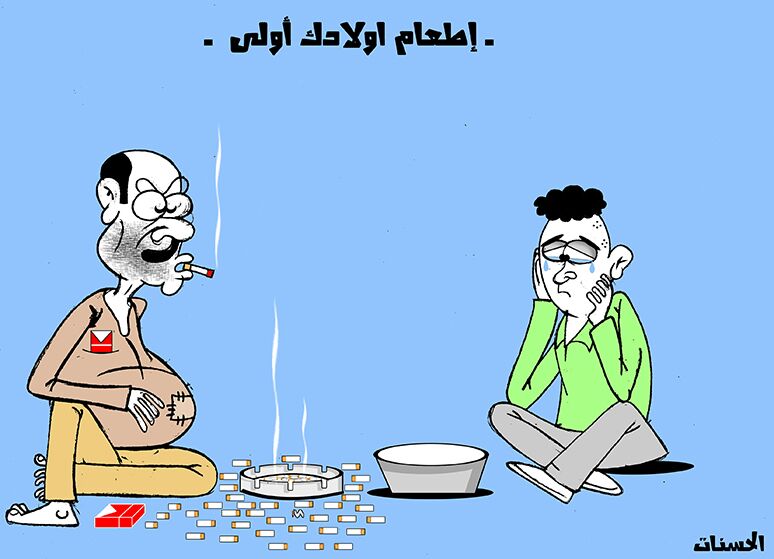 الحسنات يبدع في توصيل فكرة مضار التدخين عن طريق رسمه الكاريكاتير الهادف