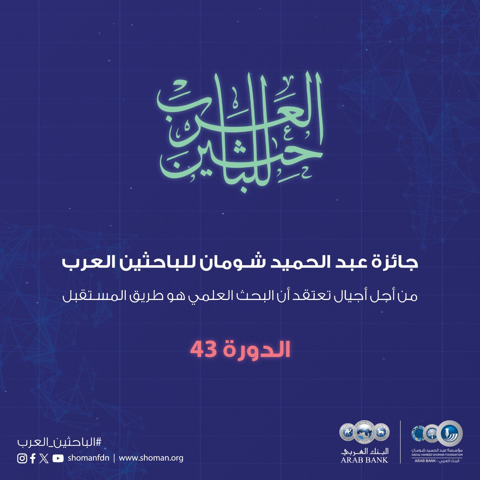 "شومان" تطلق جائزة الباحثين العرب في دورتها الـ(43)