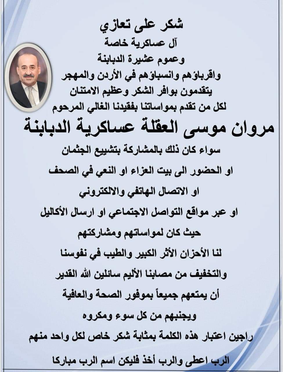 شكر على تعاز آل عساكرية خاصة وعموم عشيرة الدبابة