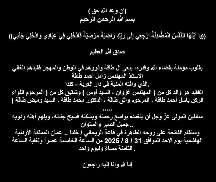 آل عليان وآل الرمحي ينعون الحاج المرحوم تيسير حامد الزايد (ابو مجدي)