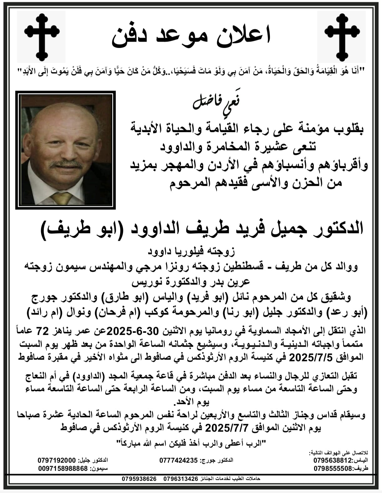 شقيق المؤرخ الدكتور جورج طريف في ذمة الله