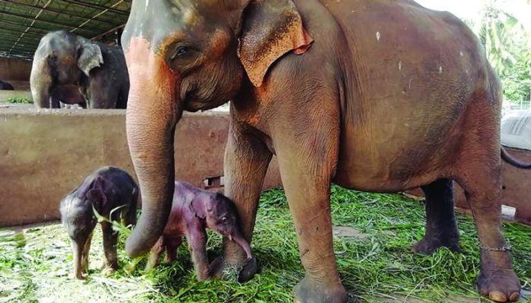توأم في الأسر.. ولادة نادرة لفيلين بسريلانكا