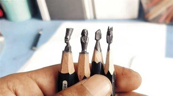 فنان ينحت تماثيل فرعونية على سنون أقلام الرصاص - صور