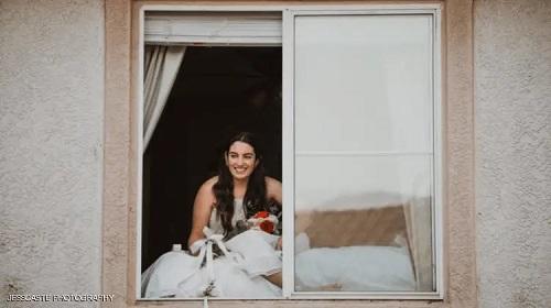 حفل زفاف عبر النافذة بسبب كورونا