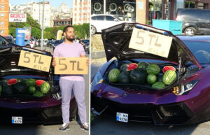 رجل يبيع البطيخ على لامبور غيني باسطنبول – شاهد الصور والفيديو