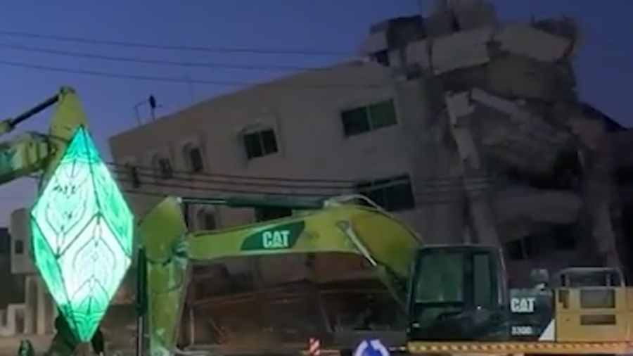 شاهد لحظة انهيار بناية في إربد (فيديو)