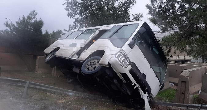 بعد إصابة سائقها بنوبة قلبية…تدهور حافلة طلاب جامعة بإربد
