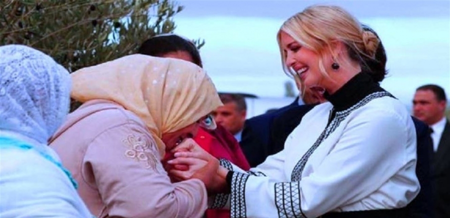 بالفيديو .. امرأة مغربية تنحني وتقبل يد ايفانكا ترامب.. هذا ما قالته