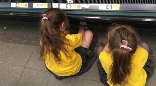 شاهد كيف عاقبت طفلتيها المشاغبتين في السوبر ماركت