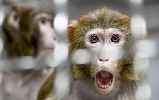قرد يساوم رجلا على نظارته في الهند - فيديو