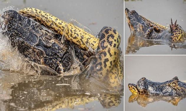 شاهد معركة نادرة بين أناكوندا وتمساح عملاق - فيديو