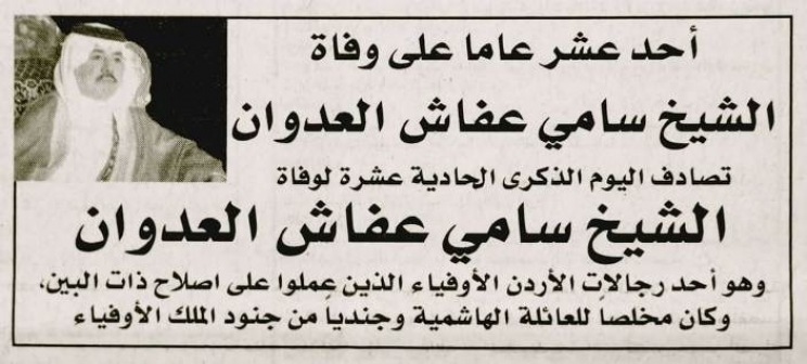 أحد عشر عاما على وفاة الشيخ سامي عفاش العدوان