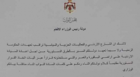 خليل عطية ينتقد الرزاز...ويطالبه باعلان موقف واضح من اتفاقية الباقورة والغمر