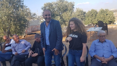 شاهد بالصور...النائب طارق خوري يعاهد " عهد التميمي " من منزلها في رام الله