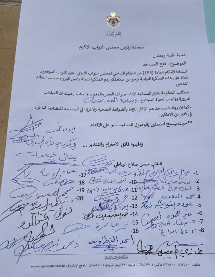مذكرة نيابية تطالب الحكومة بفتح المساجد لأداء صلوات الفجر والمغرب والعشاء