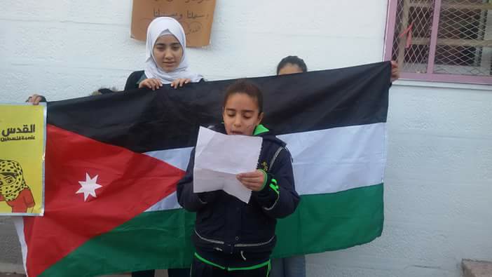 كل الشكر لطالباتنا و معلماتنا العزيزات للتفاعل مع هذه الوقفة، حيث ألقت الدكتورة نجاح الخلايلة مديرة المدرسة كلمة تحدثت من خلالها على رابط الاخوه والدم وحماية المقدسات بين الشعبين الاردني والفلسطيني مؤكدة على مواقف الملك المعظم عبد الله الثاني ابن الحسين في حماية القدس ورفض التنازل عن أي شبر منها كما هو عهدنا بالهاشميين قادة وحماة للديار والمقدسات.