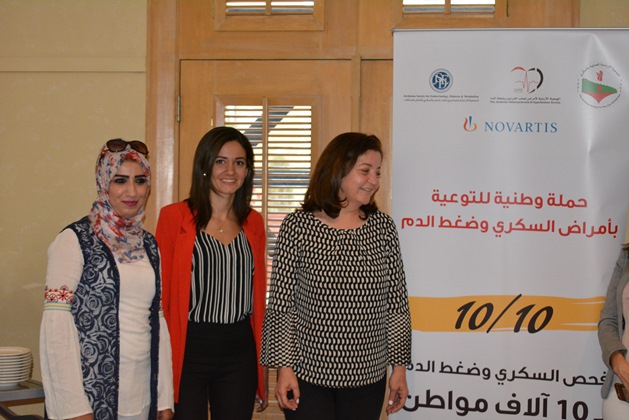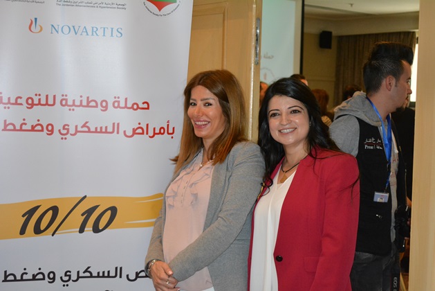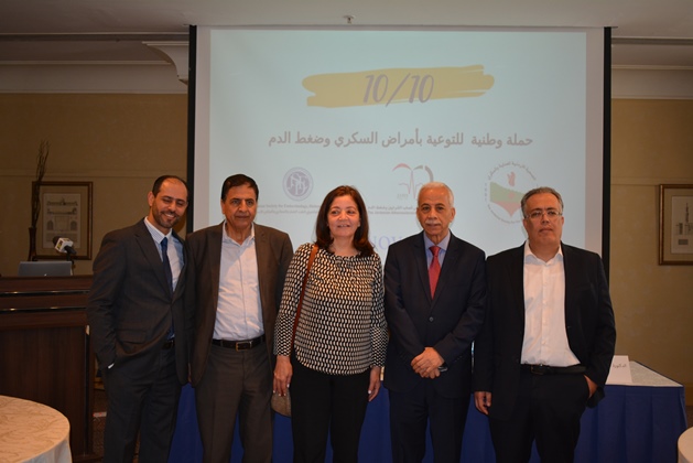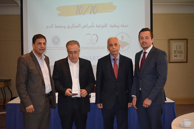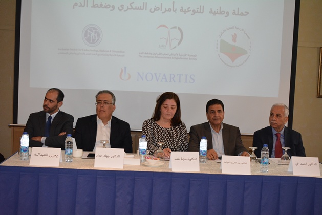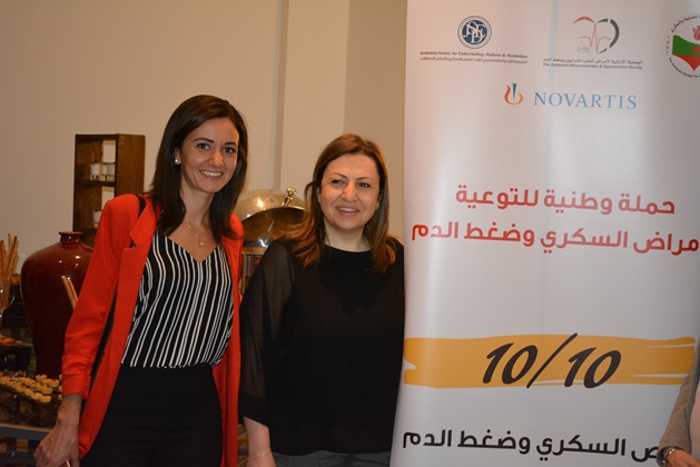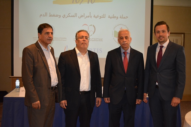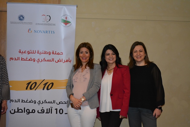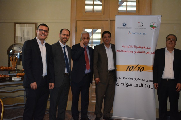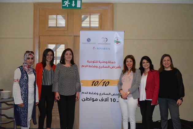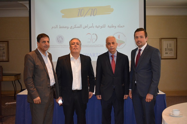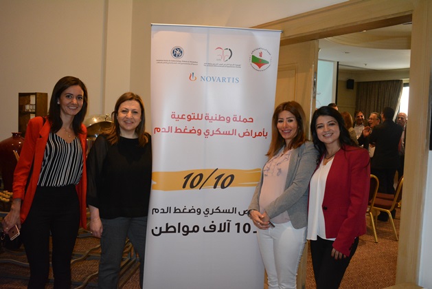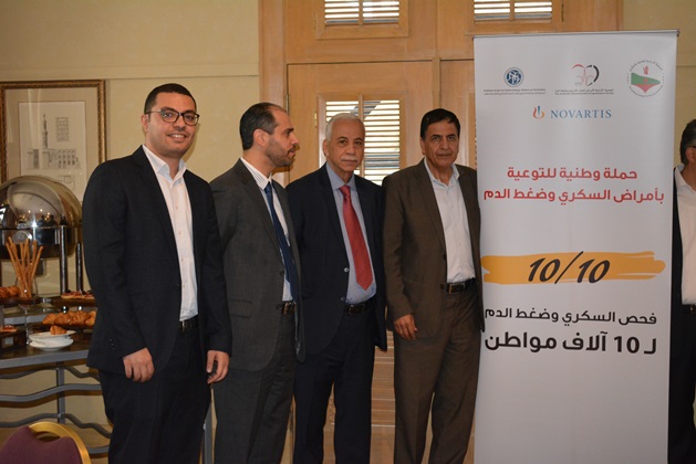 عمان 9 ايار 2018 – أطلقت الجمعية الأردنية للعناية بالسكري، والجمعية الأردنية لاختصاصيي الغدد الصم والسكري وأمراض الاستقلاب، والجمعية الأردنية لأمراض تصلب الشرايين وضغط الدم أمس حملة وطنية للتوعية بمرض السكري والضغط بعنوان "١٠/١٠" بمناسبة اليوم العالمي للضغط وحلول شهر رمضان المبارك، وتنطلق الحملة بدعم من شركة نوفارتس، وذلك في مؤتمر صحفي حضره عدد من الصحفيين والأطباء والمتخصصين المهتمين بالقطاع الصحي في الأردن.