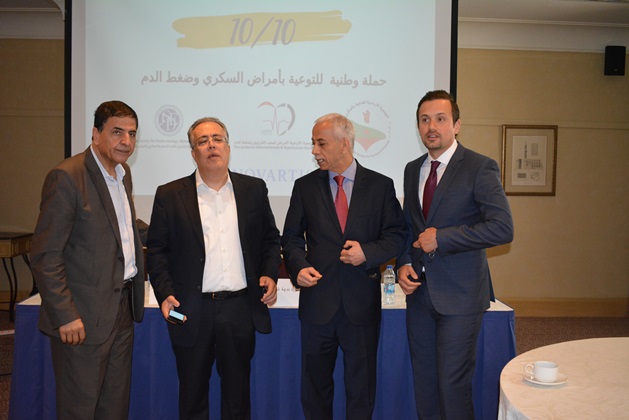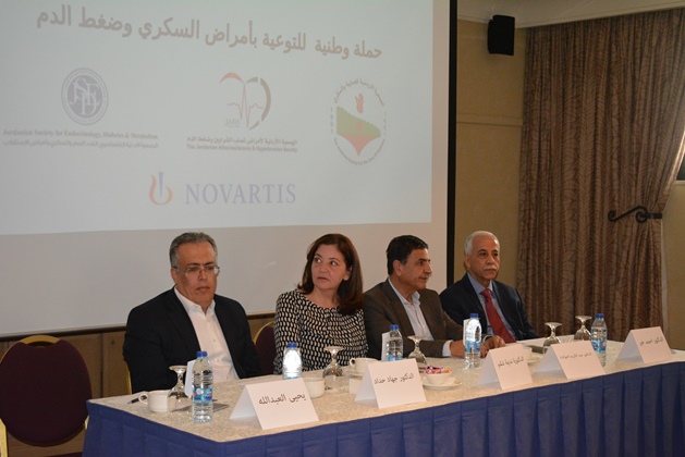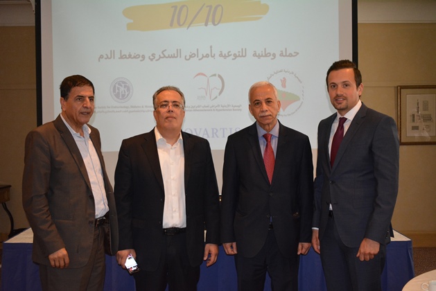 أنباء الوطن - عمان 9 ايار 2018 – أطلقت الجمعية الأردنية للعناية بالسكري، والجمعية الأردنية لاختصاصيي الغدد الصم والسكري وأمراض الاستقلاب، والجمعية الأردنية لأمراض تصلب الشرايين وضغط الدم أمس حملة وطنية للتوعية بمرض السكري والضغط بعنوان "١٠/١٠" بمناسبة اليوم العالمي للضغط وحلول شهر رمضان المبارك، وتنطلق الحملة بدعم من شركة نوفارتس، وذلك في مؤتمر صحفي حضره عدد من الصحفيين والأطباء والمتخصصين المهتمين بالقطاع الصحي في الأردن.