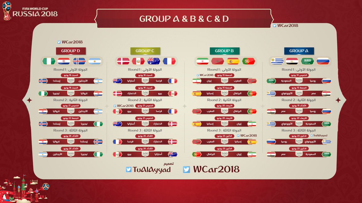 - جدول مباريات الدور الأول في "مونديال روسيا 2018":