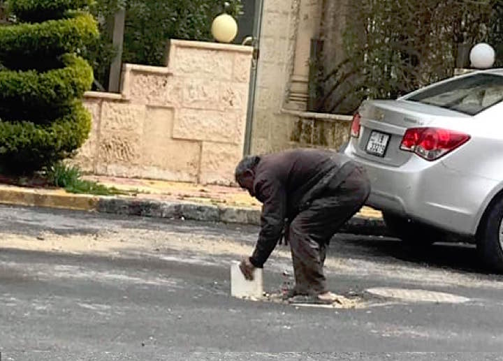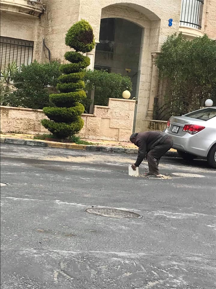 أنباء الوطن - - نشرت سيدة أردنية ناشطة على مواقع التواصل الاجتماعي نصاً وصوراً تفيد بقيام رجل كهل بردم حفرة في الشارع ووضع بلاطة لتحذير المارة من خطر الحفرة.
