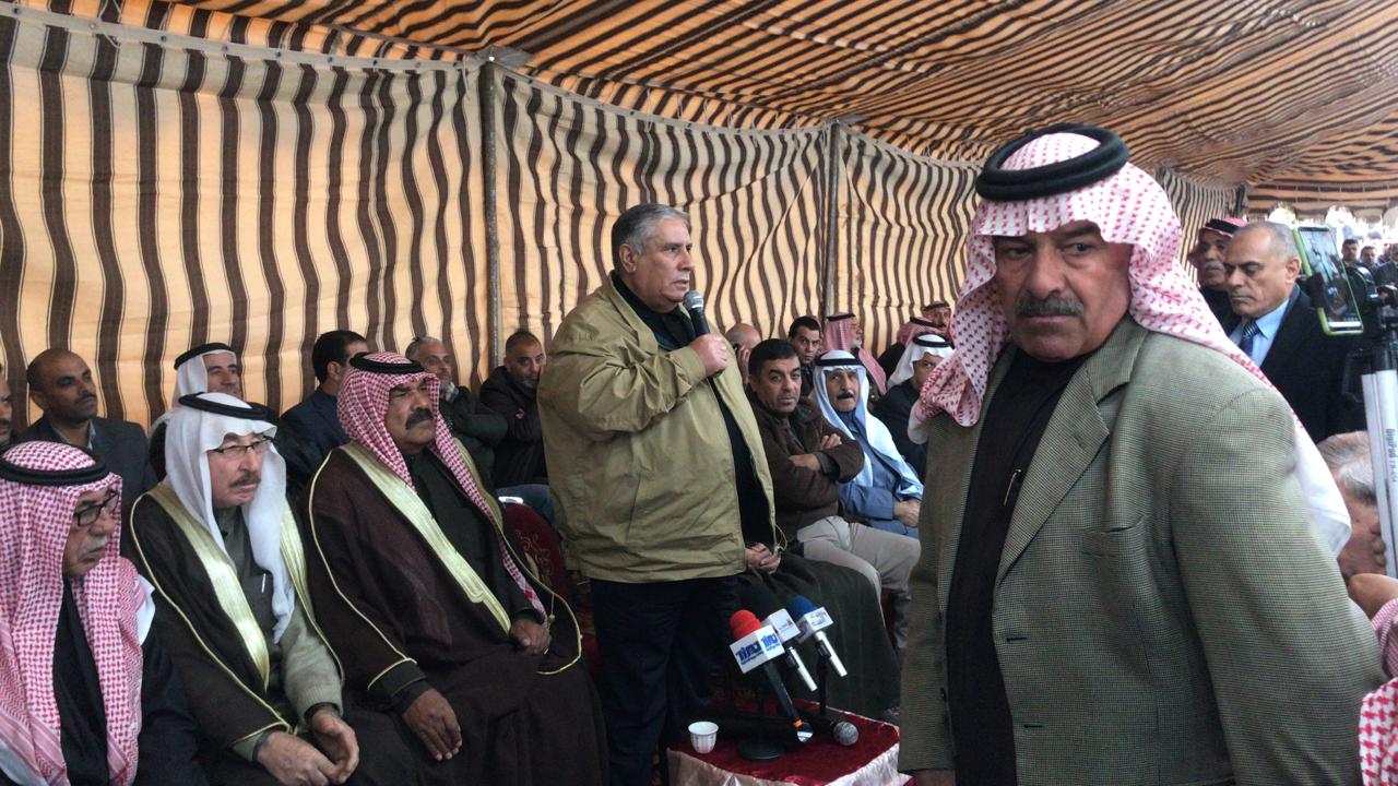 أنباء الوطن - توجهت جاهة عشائرية كبيرة من شيوخ ووجهاء المملكة برئاسة الشيخ يوسف الشهوان ، إلى مضارب عشيرة المناصير في بيادر وادي السير وذلك لأخذ عطوة اعتراف في حادثة مقتل الشاب برجس المناصير والذي قتل يوم الجمعة الموافق ٢٩/١١/٢٠١٩.وطلب الشيخ الشهوان إعطاء الجاهة عطوة اعتراف حسب العادات والعرف العشائري حيث تكرم النائب فضيل النهار بإعطاء الجاهة عطوة عشائرية مشروطه بتوقيع اهل القاتل على وثيقة بموافقة اهل القاتل بإعدام ابنهم بعد هذه الفعلة وعدم توكيل محامٍ وجلوة خمسته وعدم دخولهم منطقة البيادر واعطيت العطوة اكراما لله ورسوله والملك والجاهة الكريمة.وعين كفيل الدفا فواز النهار المناصير بالإضافة لعشيرته وتم كتابة صك العطوة والتوقيع عليه بحضور رئيس مركز امن بيادر وادي السير انور الدعجة.وتقدم الشيخ الشهوان بالشكر والتقدير من قبيلة عباد عامة وعشيرة المناصير خاصة على حسن الاستقبال وكرم الضيافة.