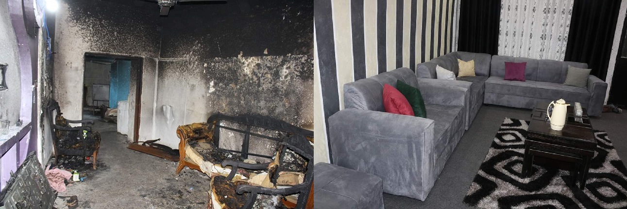 فريق نسمة خير يعيد أحد الأسر العفيفة إلى منزلها بعد تعرضه للحريق ( صور )