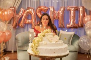 ونشرت “ياسمين صبري” صورًا على مواقع التواصل الاجتماعي، توثق مظاهر الاحتفال بعيد ميلادها، حيث تزين المنزل بالبالونات الملونة والزينة وبالونات الهليوم المطبوع عليها اسمها وصورها، بالإضافة إلى هدايا عيد الميلاد . وظهر على ملامح الممثلة ياسمين صبري المفاجئة بسبب تجهيزات زوجها لعيد ميلادها، فيما بدا عليها علامات البهجة.