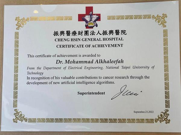تايوان تكرم عالم اردني لتطويره خوارزمية ذكاء اصطناعي قادرة على الكشف المبكر عن سرطان الثدي