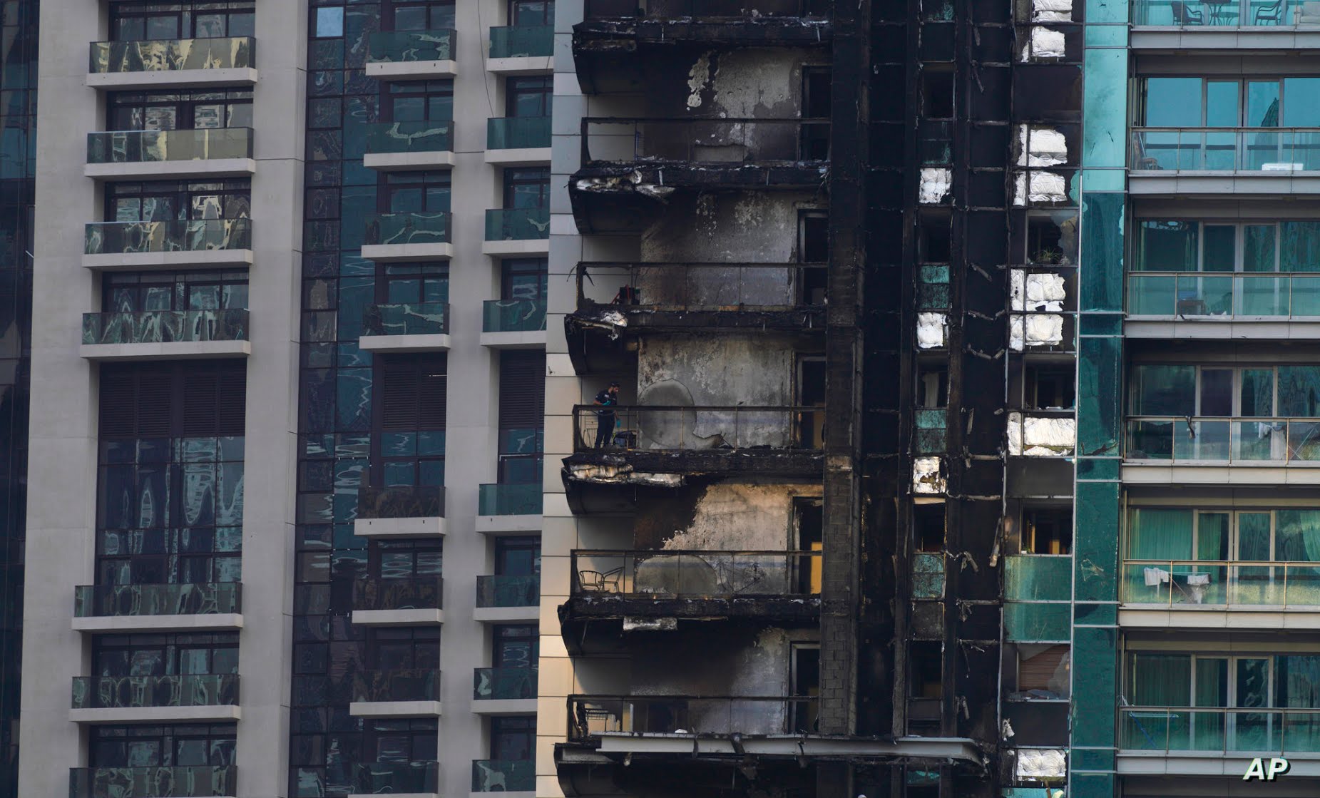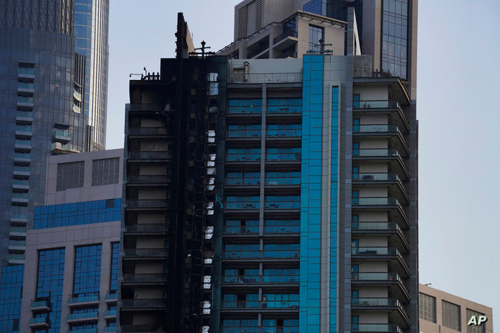 وأمكن مشاهدة آثار سوداء جراء الحريق، والتي امتدت إلى المبنى الذي هو جزء من سلسلة أبراج تسمى "بوليفارد ووك 8" التابعة لشركة "إعمار"، المطور المدعوم من الدولة في الإمارة.