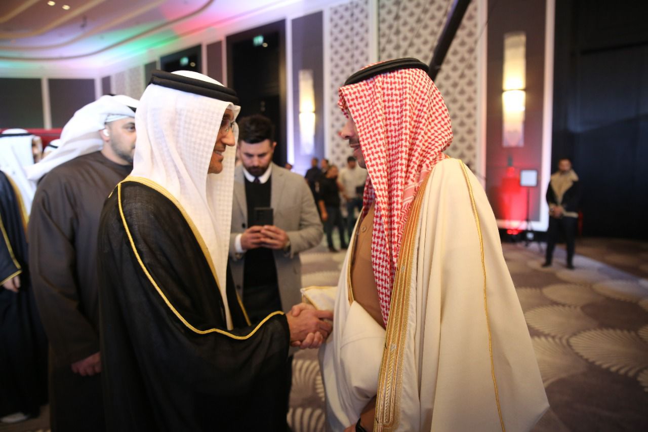 وفي كلمة إلى السيد خالد النعيمي القائم بالأعمال بالإنابة في سفارة دولة الإمارات لدى الأردن خلال الحفل، تحدث فيها عن إنجازات دولة الإمارات على الصعيدين الداخلي والخارجي، كما أشاد بمستوى العلاقات الثنائية المتميزة التي تجمع البلدين الشقيقين، وأكد أنها علاقات تاريخية، قامت على مبادئ الاحترام المتبادل والدرجة العالية من التنسيق والتعاون، كما أن العلاقات الاقتصادية في ازدهار مستمر، حيث تعتبر دولة الإمارات من بين أهم الدول التي تتمتع بحجم تبادل تجاري كبير مع الأردن، فضلاً عن مشاريع واستثمارات ضخمة تزيد قيمتها عن سبعة عشر مليار دولار.