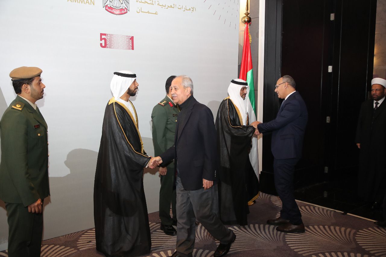 بمناسبة عيد الاتحاد الواحد والخمسين لدولة الإمارات العربية المتحدة، استقبل السيد خالد علي النعيمي القائم بالأعمال بالإنابة، في سفارة دولة الإمارات العربية المتحدة لدى المملكة الأردنية الهاشمية مساء الخميس، في الاحتفال الذي أقامته السفارة الإماراتية بالعاصمة عمّان، كبار المسؤولين الأردنيين يتقدمهم