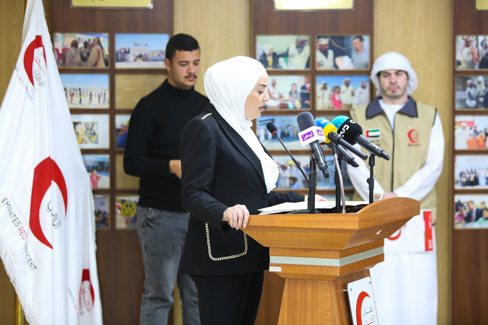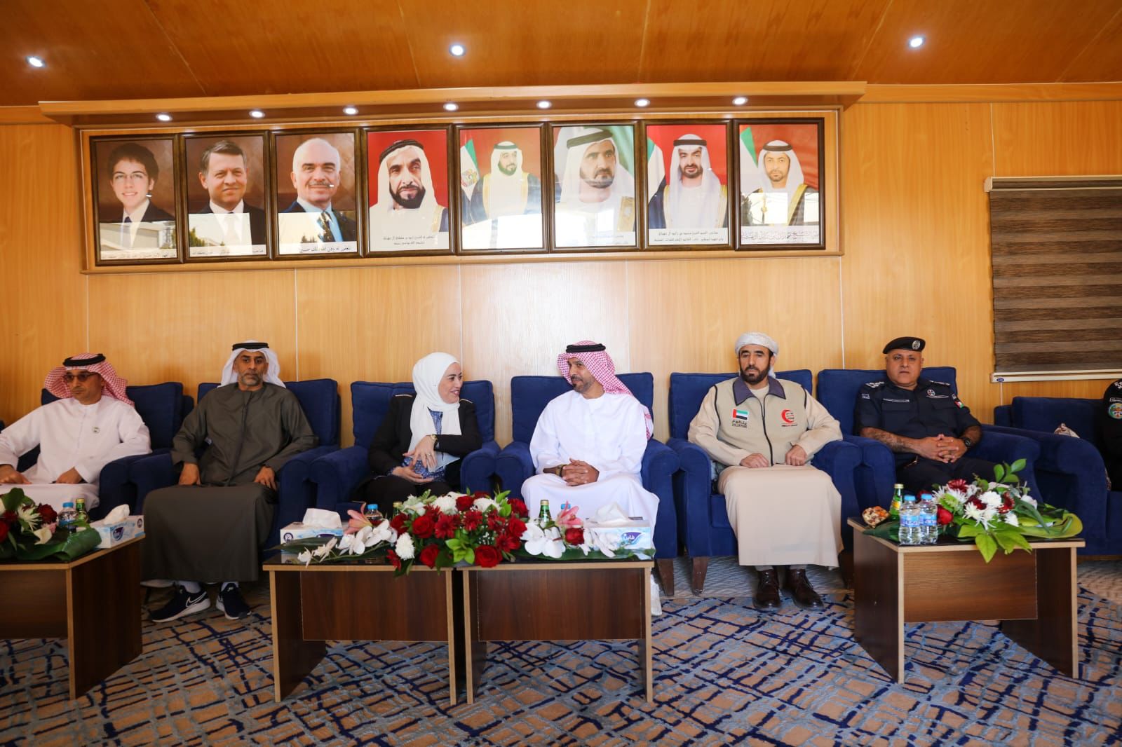 وقدم قائد فريق الإغاثة الإماراتي سعادة/ سعيد محمد النيادي عرضا توضيحيا عن المخيم وأهم الخدمات المقدمة للاجئين السوريين فيه .
