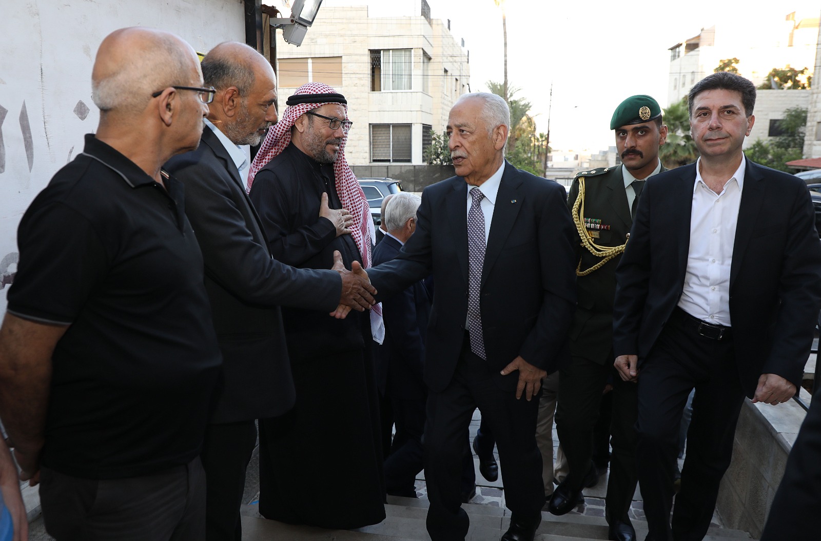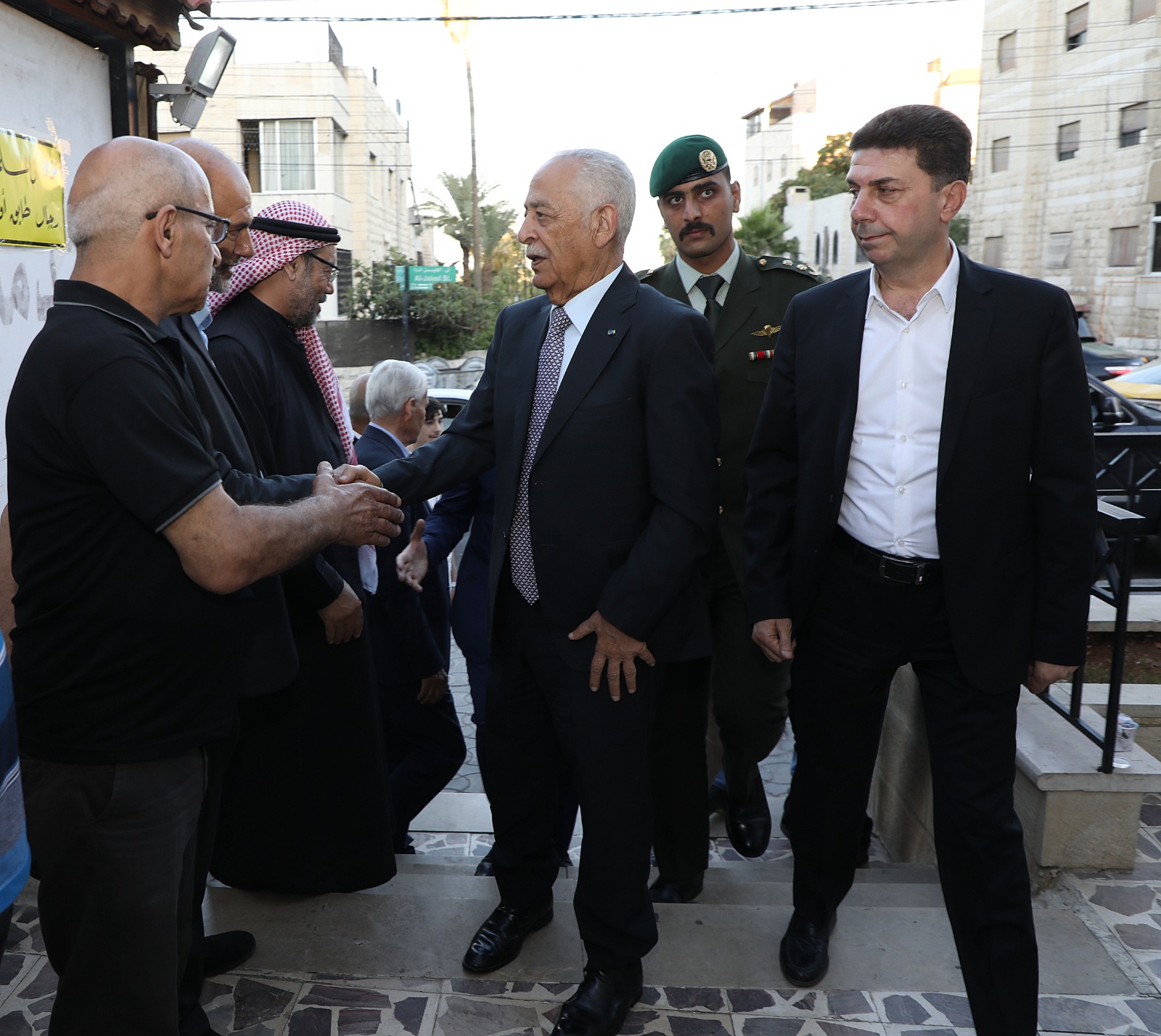 مندوبا عن جلالة الملك عبد الله الثاني بن الحسين المعظم وسمو الامير الحسين ولي العهد حفظهم الله ورعاهم معالي رئيس الديوان الملكي الهاشمي السيد يوسف حسن العيسوي يقدم واجب العزاء اليوم الخميس الموافق ٢٠٢٣/٦/٢٩ بوفاة المرحومة ميسر عبد الفتاح علي قطيشات ( ام عماد) والدة المحامي محمد زهير قطيشات.